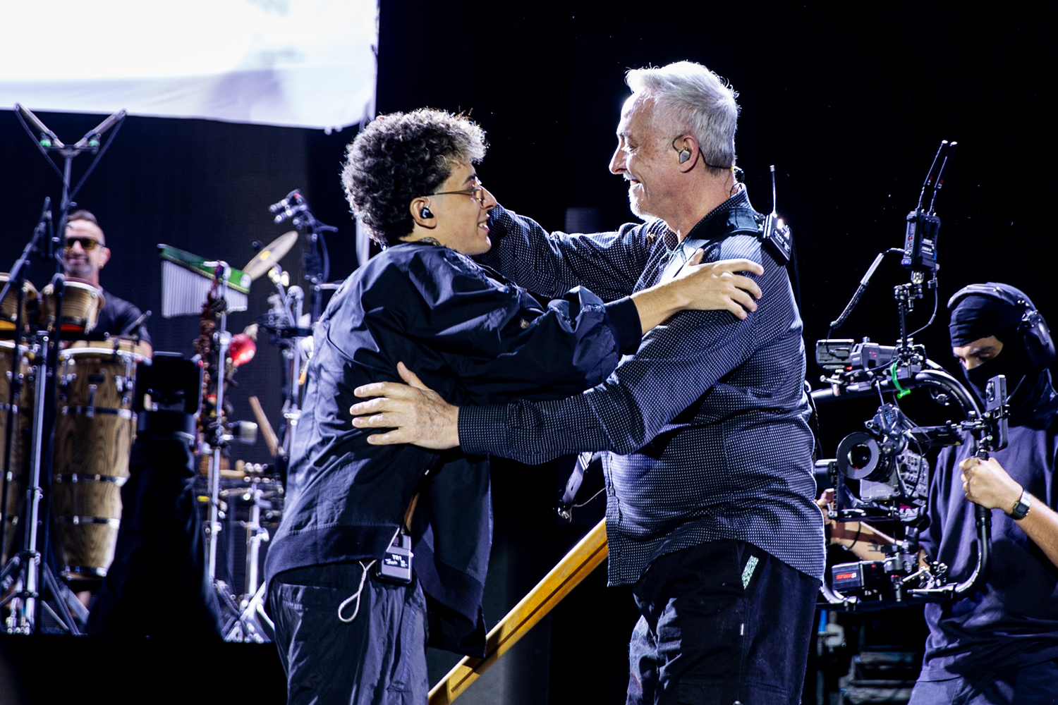 Uno de los momentos más celebrados de la noche llegó con la participación especial de Milo J en “Gil”, marcando la primera vez que ambos interpretan el tema juntos en vivo, provocando una explosión de euforia colectiva. Pero la emoción alcanzó su punto más alto cuando la cultura rapera de La Boca se encontró con la historia grande de la música argentina: David Lebón y Pedro Aznar, leyendas eternas de Serú Girán, se unieron a Trueno para interpretar “No llores por mí Argentina”. El estadio entero de pie. Un puente generacional perfecto. Un canto que atravesó décadas.